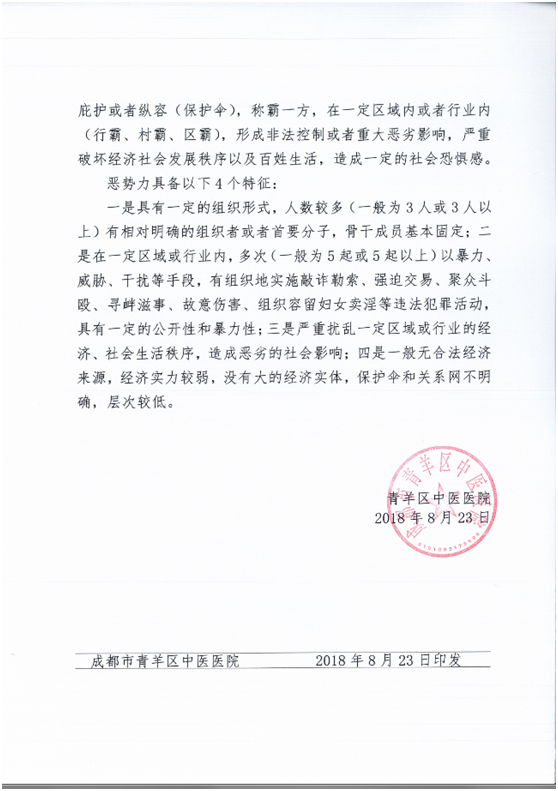成都市青羊区中医医院关于扫黑除恶专项斗争工作的通知
