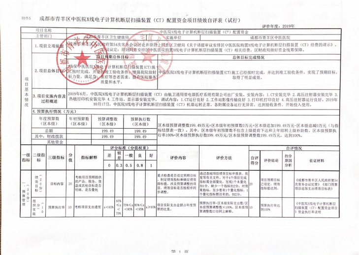 成都市青羊区中医医院X线电子计算机断层扫描装置(CT)配置资金项目绩效自评表公示