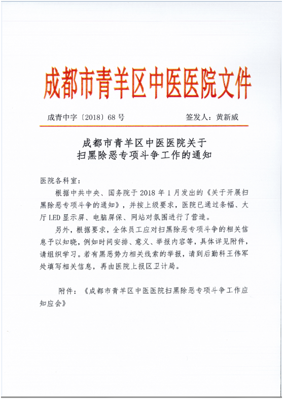 成都市青羊区中医医院关于扫黑除恶专项斗争工作的通知